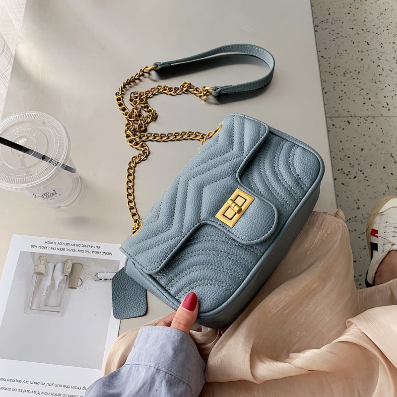 Texture small bag women's 2020 new Korean fashion leisure One Shoulder Messenger lock chain small square bag