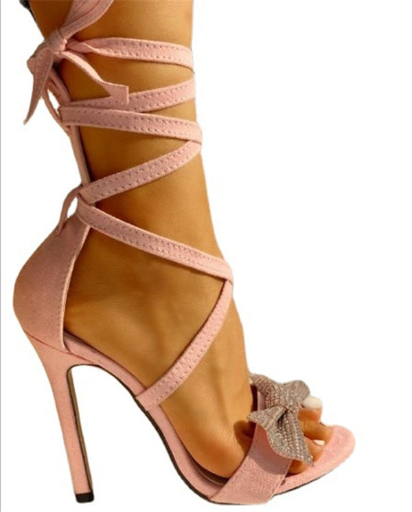 Women's Super High Heel Strappy Open-toe Rhinestone Sandals