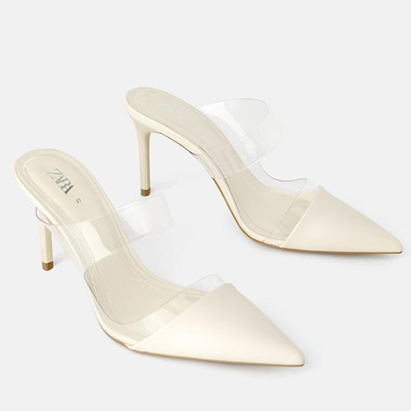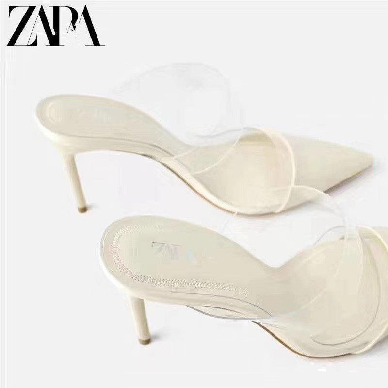 Za summer pointed shallow mouth hand feeling heel sandals women 2021 new transparent one-sided belt Baotou high-heeled sandals women