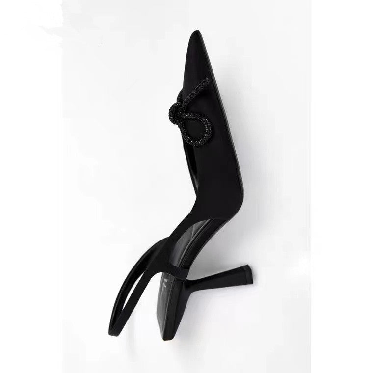 Zar autumn and winter new women's shoes black bright decoration pointed open heel Muller shoes 12228810040